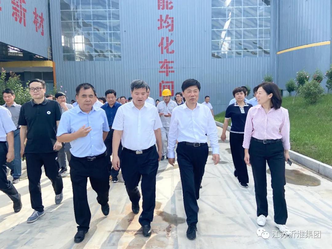 | 2020年7月25日,沭阳县委书记卞建军、县长彭伟带领县委、县政府领导成员和出席沭阳县第12届十次会议的与会人员,莅临江苏沂淮新型材料有限公司观摩指导工作。